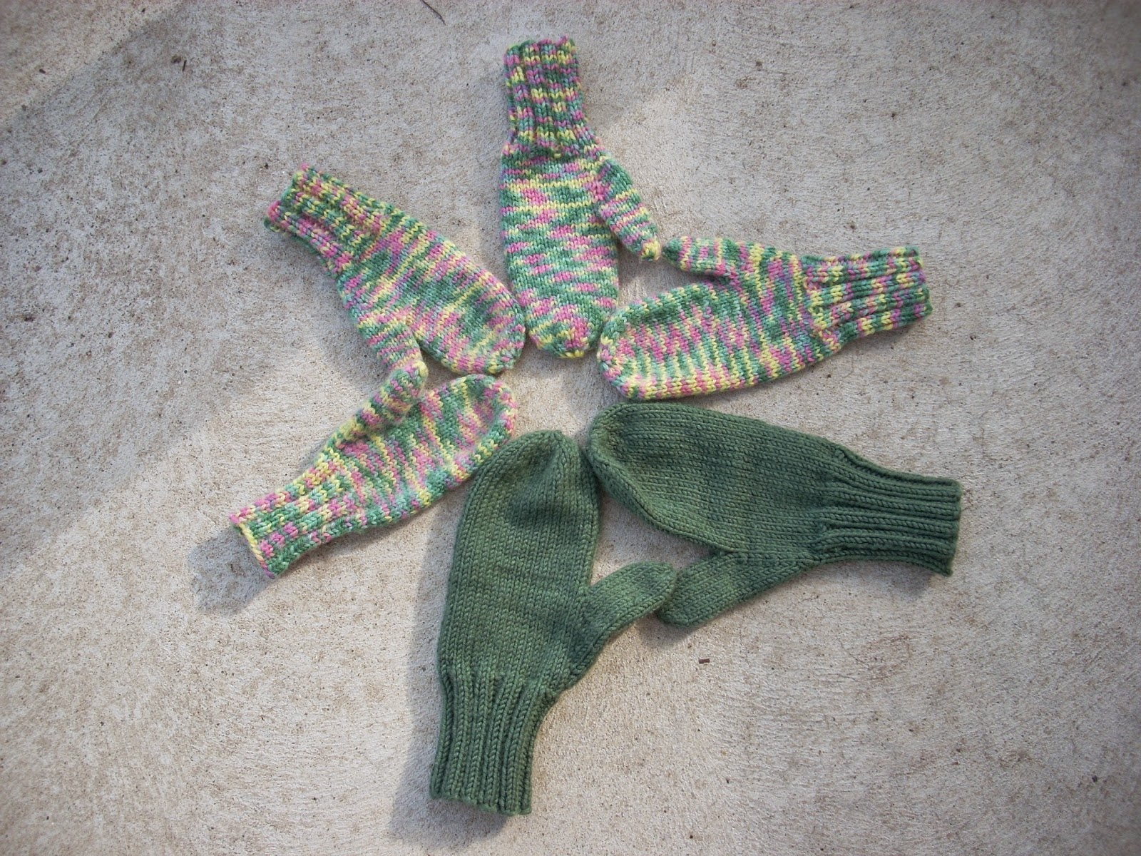 Three pairs of mittens, for my three little monkeys. We went camping in Yellowstone for Labor Day Weekend. Something my husband I liked to do before we had children, and we lived over this way. I remembered how cold it got at night, so I decided wool mittens were in order.
